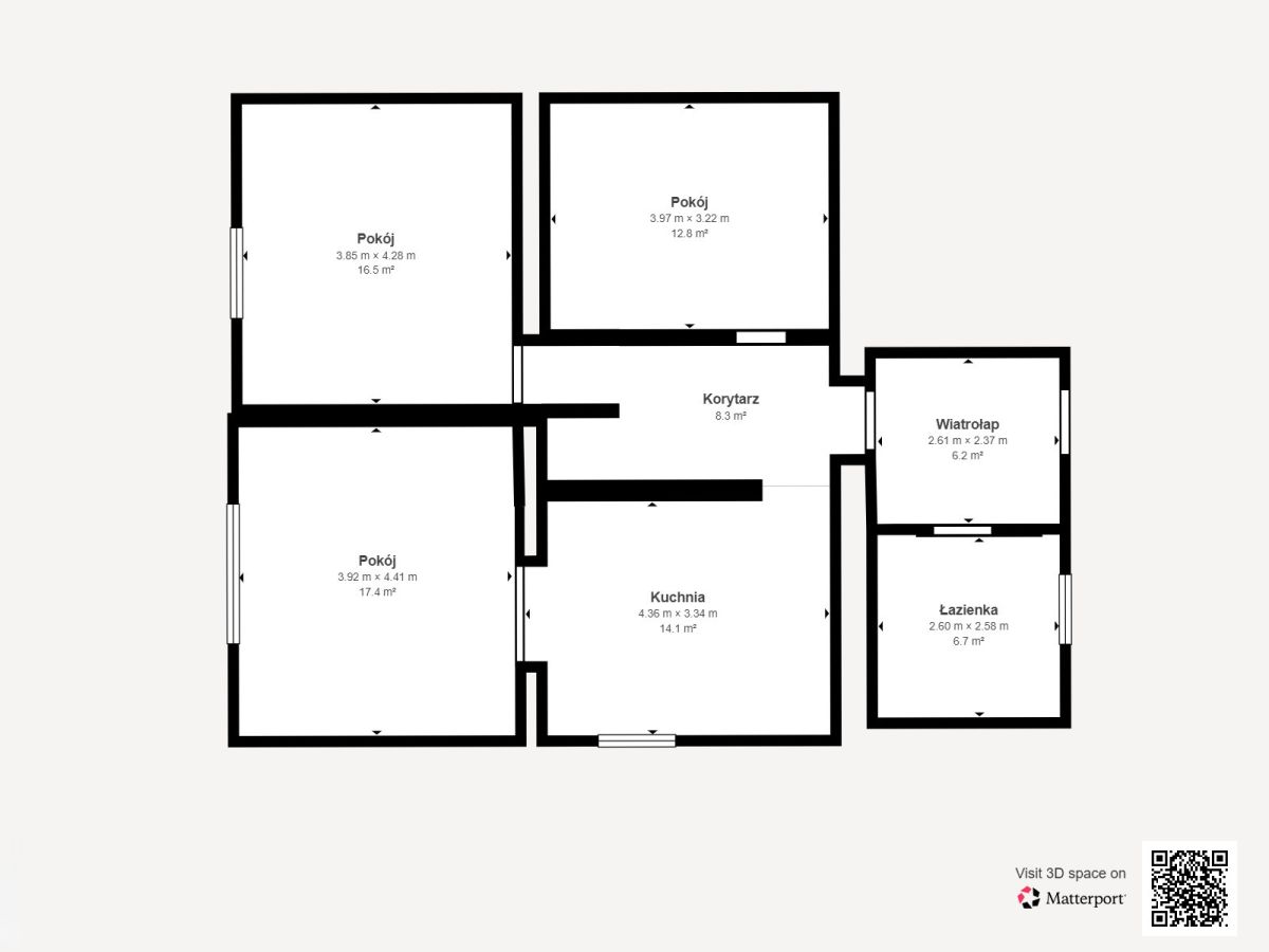 Rzut lokalu służy wyłącznie celom poglądowo‑orientacyjnym i nie stanowi podstawy do wykonywania na nim prac architektoniczno‑budowlanych.