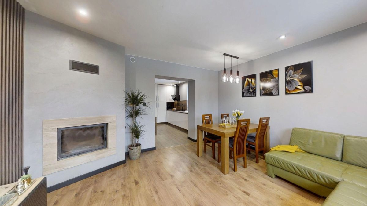 • 4 sypialnie + pokój dzienny z kominkiem