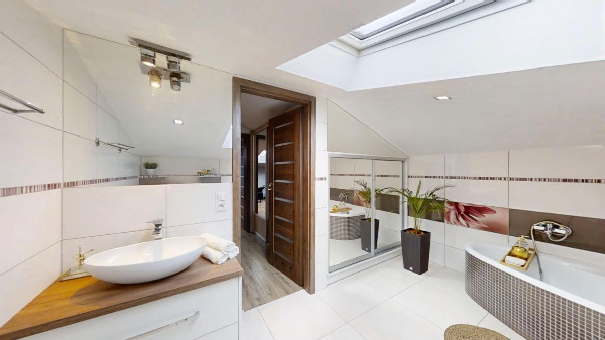 • 2 łazienki - wanna na poddaszu, prysznic na parterze