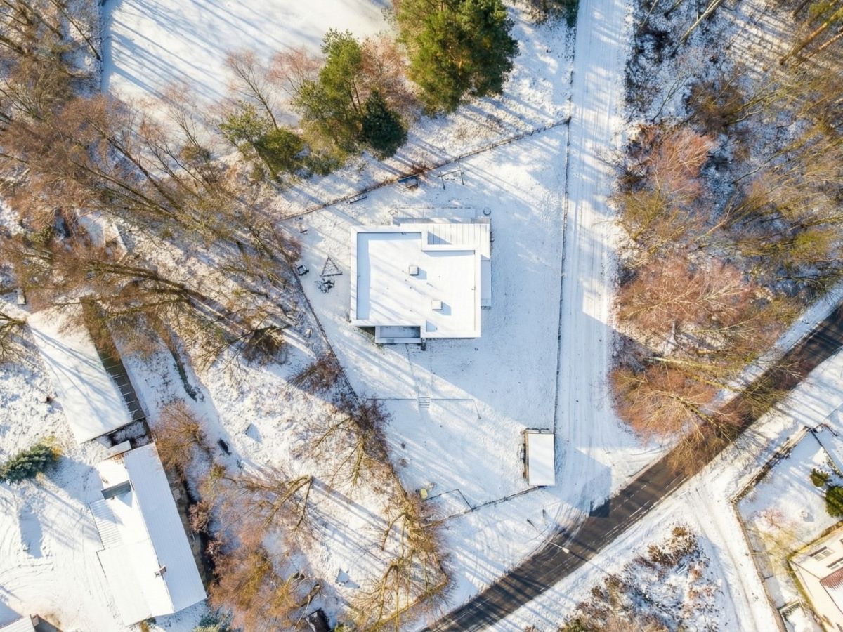 Ten oryginalny, nowoczesny budynek jest zlokalizowany na ogrodzonej działce o powierzchni niemal 1000m2 z dostępem do asfaltowej drogi.