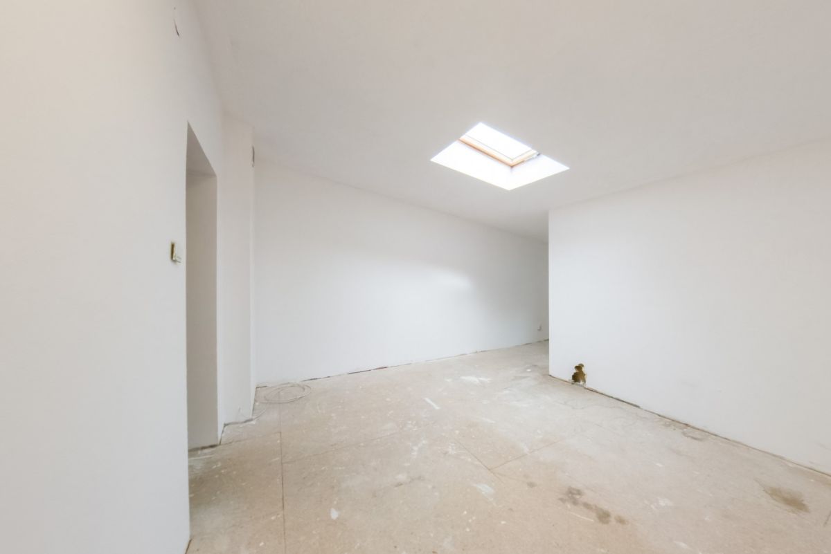 Mieszkanie jest puste - brak mebli i wyposażenia, co umożliwia natychmiastowe rozpoczęcie prac wykończeniowych.