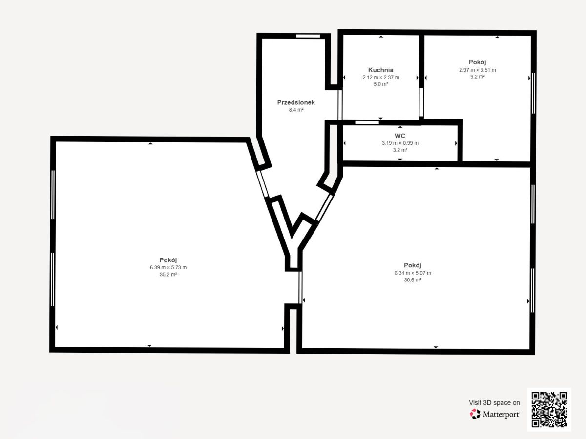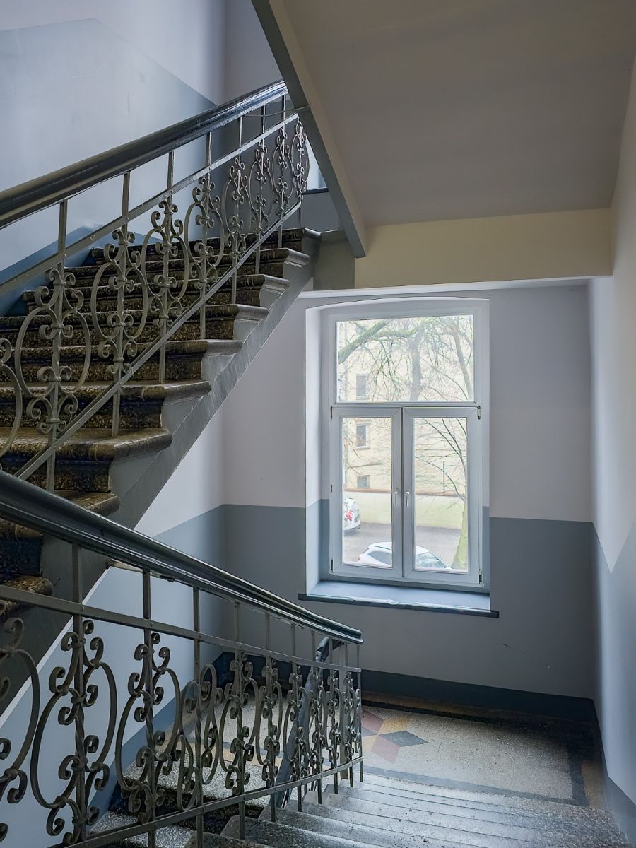 Mieszkanie składa się z 3 pokoi i znajduje się na drugim piętrze kamienicy. Okna wychodzą na dwie strony świata, zapewniając doskonałe doświetlenie oraz przewiewność. Układ lokalu pozwala na swobodną aranżację - od klasycznego rozkładu po nowoczesny apartament z przestronną strefą dzienną. Lokal do generalnego remontu, co daje pełną swobodę w stworzeniu wnętrza dopasowanego do indywidualnych oczekiwań lub wymagań rynku najmu premium.