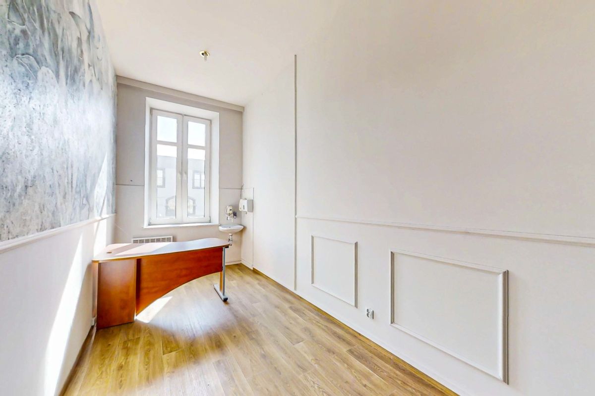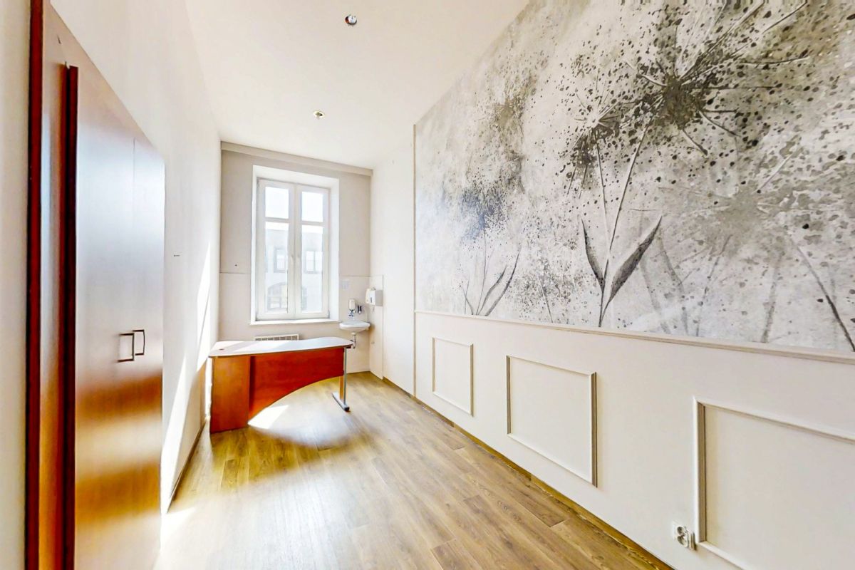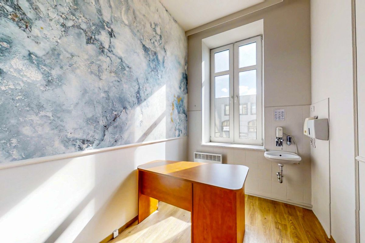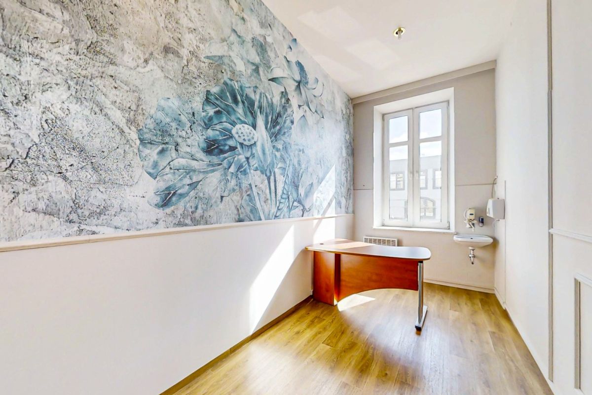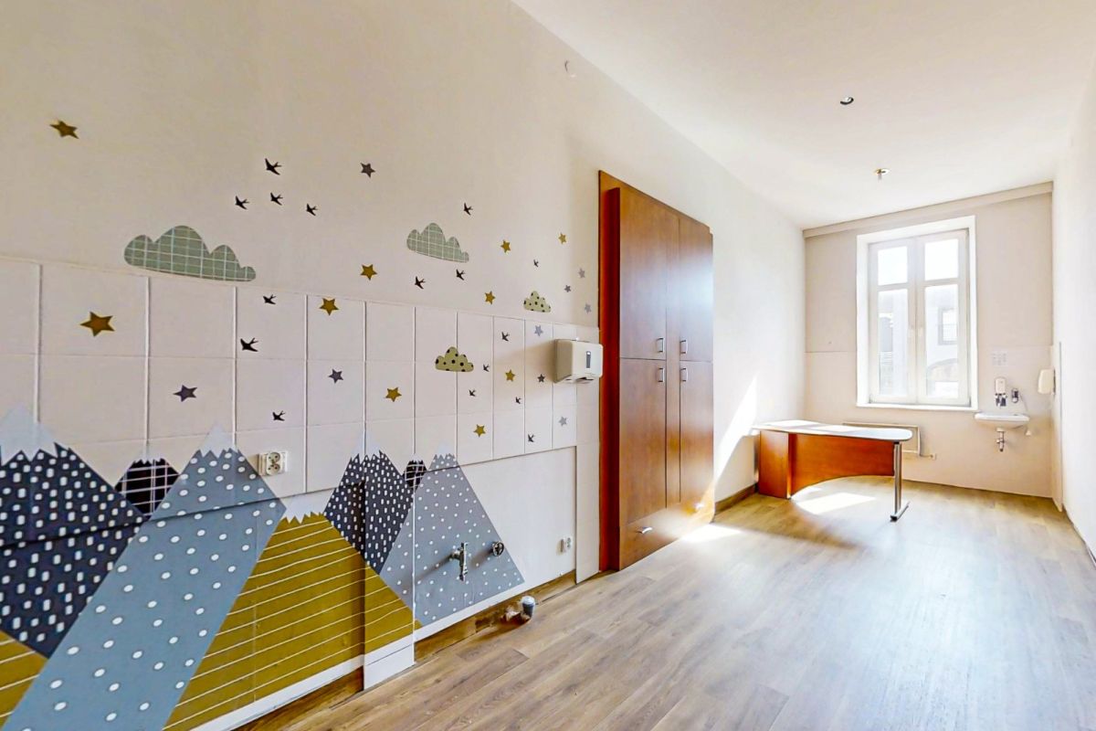 To miejsce niejedno widziało - wcześniej była tu przychodnia lekarska, więc niech Cię nie zdziwią pokoje gotowe na kozetkę i ciśnieniomierz. Ale spokojnie - obecnie to idealna baza pod klimatyczne mieszkanie, studio jogi, biuro terapeutyczne lub pokoje na wynajem.